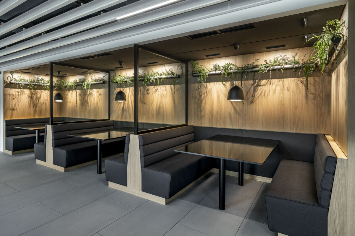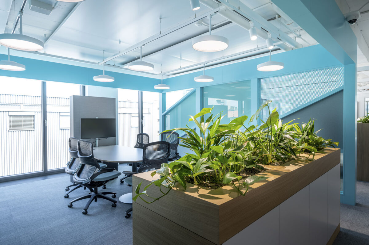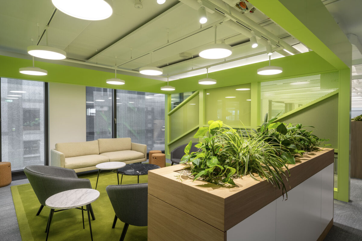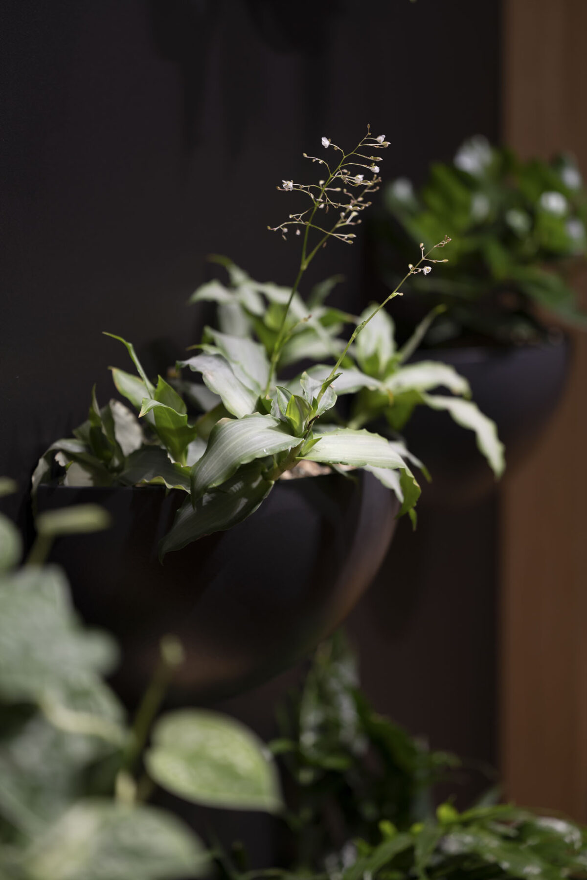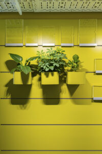 Perkins + Will Architekten aus London haben für jedes Bürogeschoss eine subtil unterschiedliche Farbpalette festgelegt. Um diese Designidee zu unterstreichen, hat unser Planungsteam Pflanzen und Töpfe ausgewählt, die zu den Farbpaletten und Moodboards passen. Die perfekt abgestimmte Farben und Oberflächen der Creaplant Select Serie unterstreichen die hohe Qualität der Ausstattung. Hängende Pflanzen von Pendularis verbinden die Nutzer der Boots mit der Natur. Rankpflanzen klettern an einem Seilsystem entlang die Wände hoch. Bei den Entrees zu dem Bürogeschossen sorgen üppig bepflanzte Raumtrenner für Farbe und Lebendigkeit und grenzen unterschiedliche Funktionsbereiche voneinander ab.