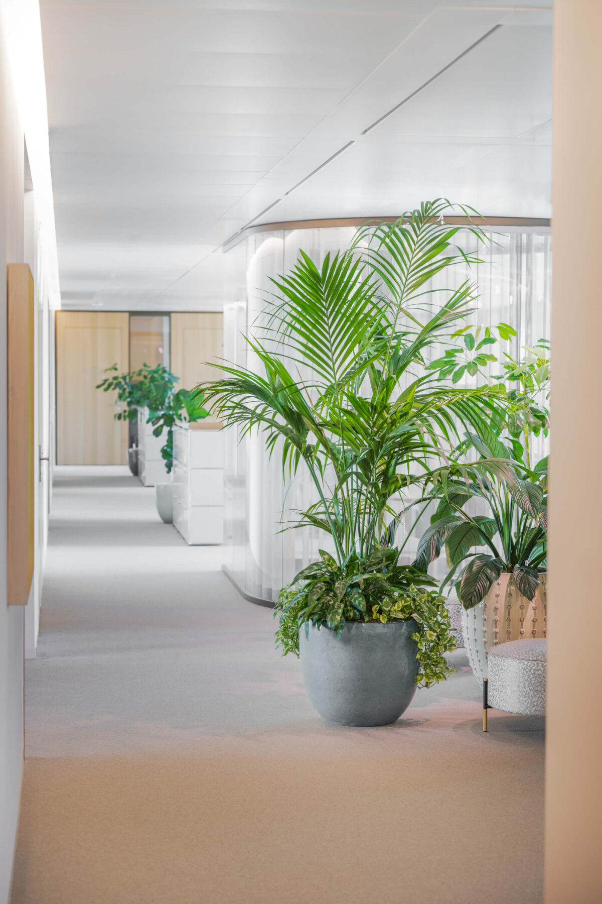Nach diesen Vorgaben gewannen wir mit unseren Ideen das Vertrauen des Planers und der Bauherrschaft. Unser Grünkonzept mit einem lebendigen Mix von Pflanzen und verschiedenen Keramikgefässen ist auch heute noch für alle Beteiligte überzeugend. Im Vollservice mit Grüngarantie von uns betreut, wird dies hoffentlich auch die nächsten Jahre so sein.