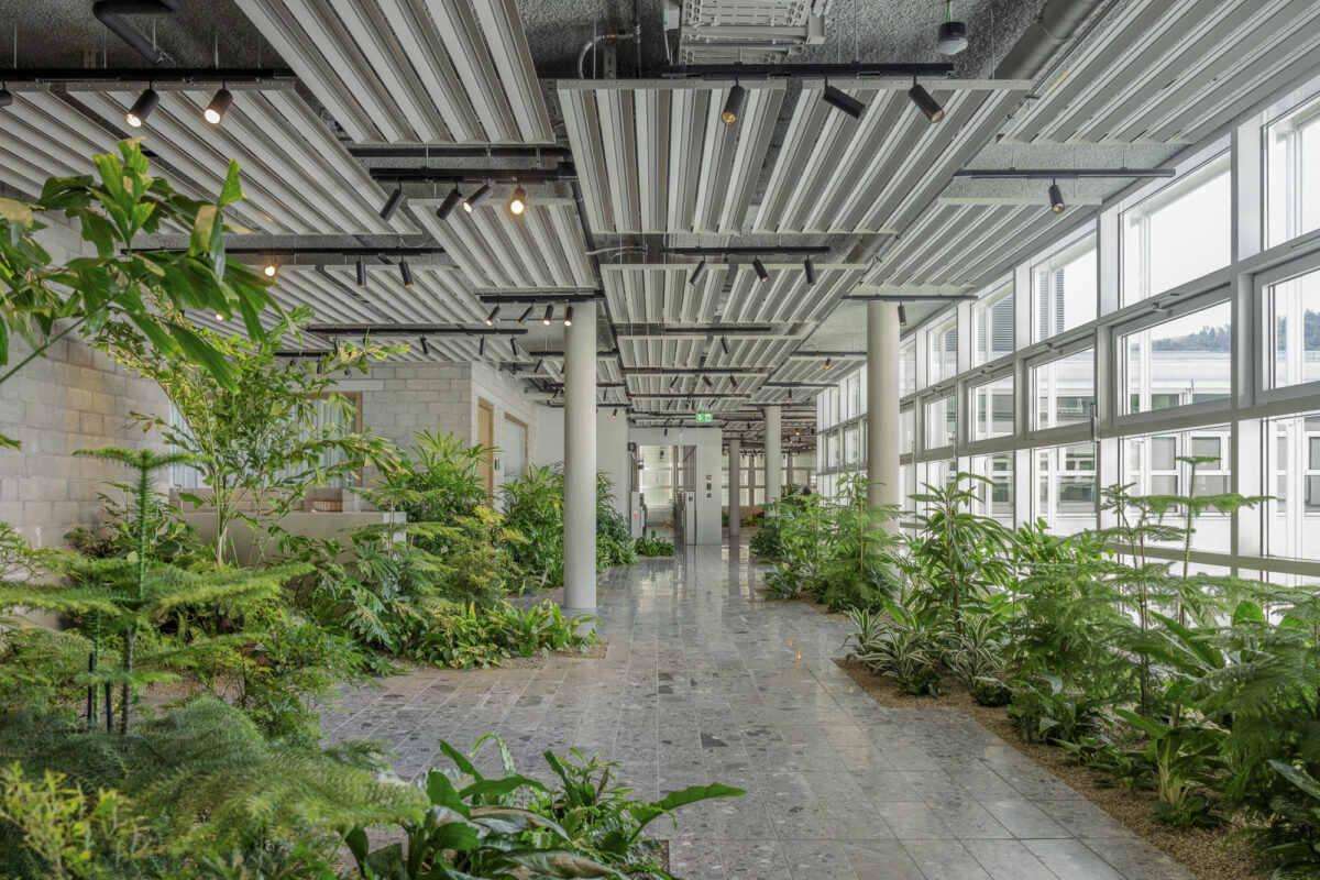 Am Hauptsitz von Holcim setzt ein vegetatives Raumkonzept neue Standards in der Innenbegrünung. Ein grossflächiger, segmentierter Innengarten verbindet die Mitarbeiter täglich mit der Natur. Das Schlüsselelement im innen Entwurf von BEYOND SPACE war die strategische Einbindung von Grünflächen und biophilen Elementen zur Förderung einer lebendigen Arbeitsumgebung, in der Produktivität und Kommunikation inmitten einer natürlichen Umgebung entsteht.